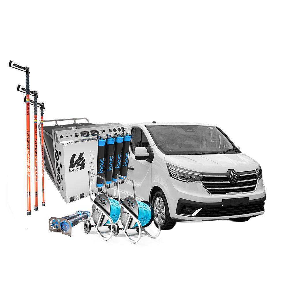 Designed for customers looking to clean residential and some commercial jobs, the V4 Fusion system produces its own pure water in soft/medium and hard water areas. The V4 system benefits from having a built-in booster pump along with PFS & ROMS features.