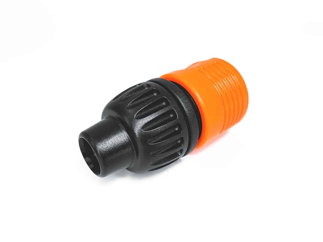 Female quick release fitting for our John Guest 12mm hose. With auto stop mechanism. The auto-stop mechanism automatically stops the water flow when disconnected.