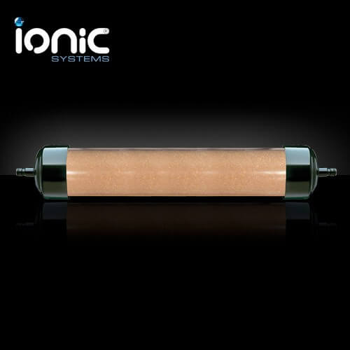 Linear water softening filter connects with standard hozelock-type fittings. Can be regenerated with saline backwash thousands of times. – W0072