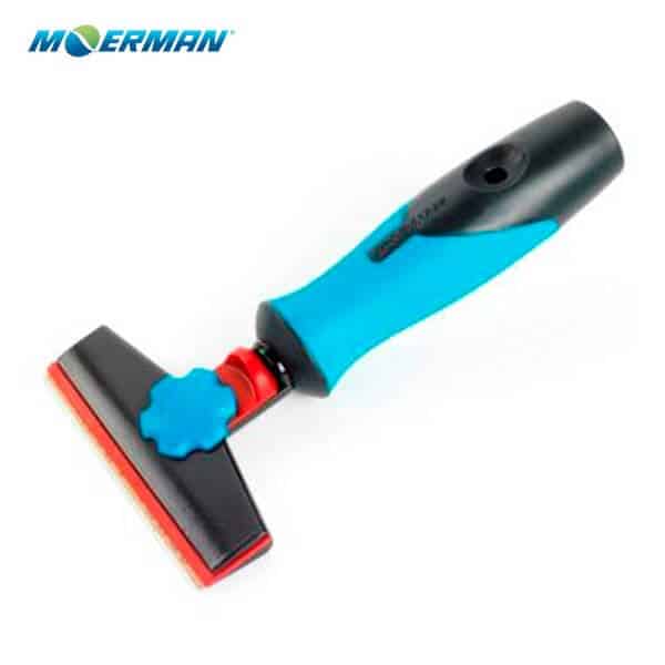 Heavy duty scrapers with easy release blade mechanism. The scraping head has a plastic safety guard to protect users. Also has a notch to enable secure, locking attachment to extension poles
