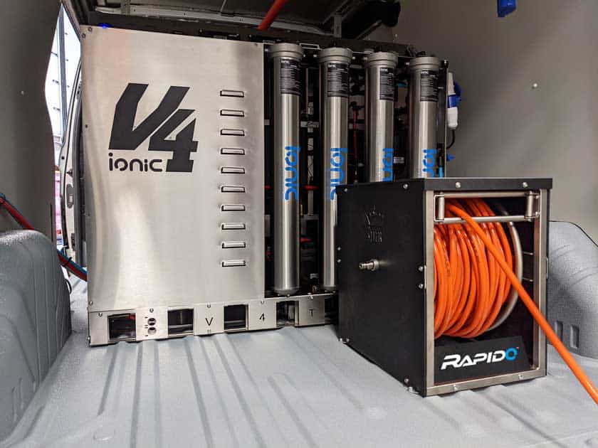 The Rapido™ Reel is constructed from high-quality stainless steel and shares the unrivaled spindle drum design of our tried and tested quality hose reel range. Rapido™ has a 10-year warranty on stainless parts, with a sleek plastic cover to protect the motor from water ingress. Rapido™ boasts 180-degree hose guide rollers and is powered by the system’s own battery. Ionic’s quality without-compromise design ethos is applied to Rapido™ throughout, and it’s built to last, meaning you can expect many years of trouble-free operation.