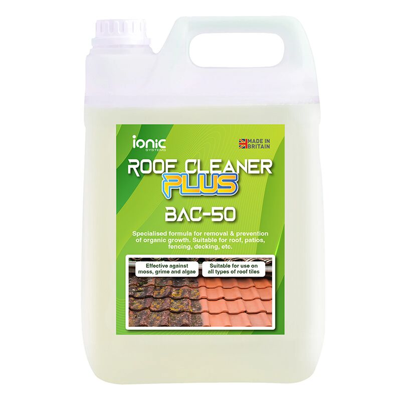 Roof Cleaner Plus is a powerful BAC 50 solution designed to remove and prevent organic growth such as moss, algae, and mould. Ideal for use on roofs, patios, decking, fencing, and other external hard surfaces. Its high-strength, spray-and-leave formula offers lasting protection with minimal effort. Supplied in 5 litre bottles.