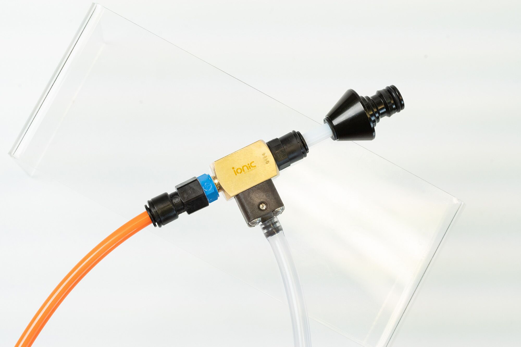 The Roof Wand Softwash Nozzle Attachment is an additional extra, for use in softwashing and applying biocides to a roof. Utilising the same push-pin style attachment head as the solar panel cleaning brush head, the softwash attachment can be quickly and easily switched depending on the desired application. Featuring a state of the art brass adema valve, fly lead, interchangeable nozzle heads; this is a complete softwashing solution for your Roof Wand.