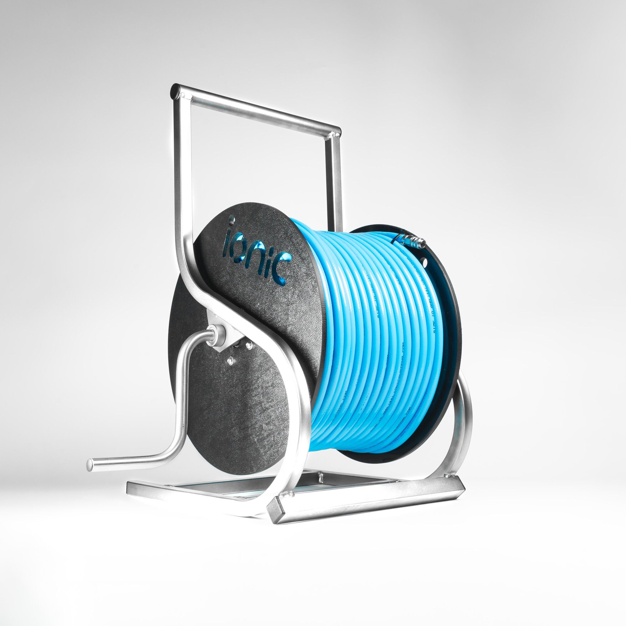 Hand carriable, quality small stainless steel hose reel. Holds 50m of ½ inch hose or 100m of Ionic RX Hose.