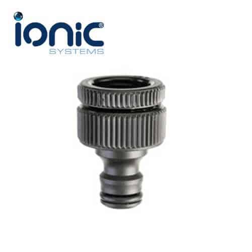 Adapts taps with ¾-inch or ½-inch thread to quick-release fittings. This will enable the tap to be used with hozelock style female hose fittings.