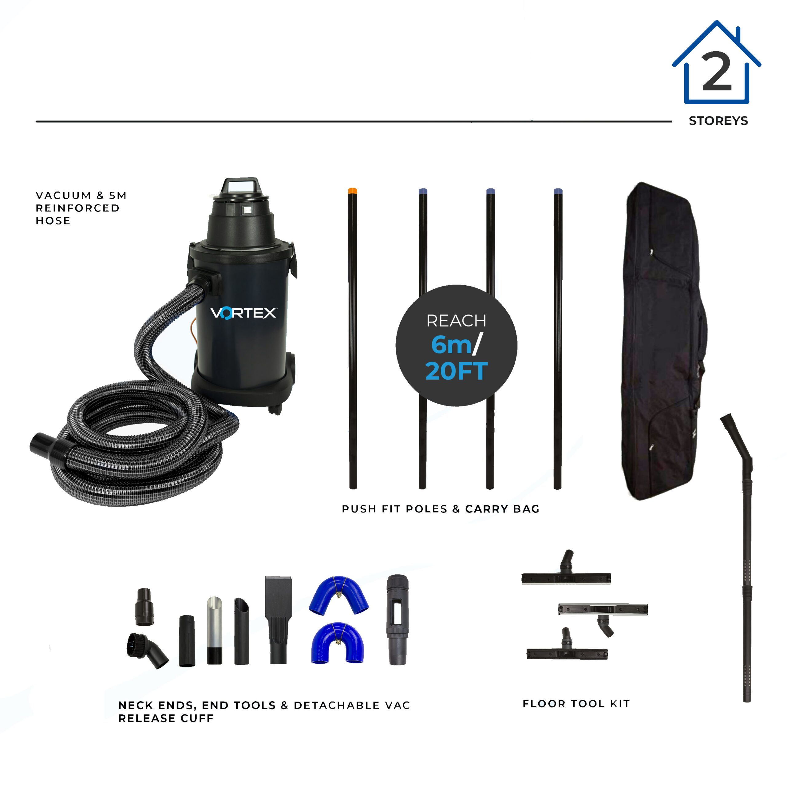 The Vortex PiccoloTM is now available with 50mm Clamped Carbon Fibre Suction poles. These light-weight high reach poles are stiff, durable, and easy to manoeuvre all from the safety of the ground. They incorporate a vacuum release system, which easily releases gutter debris without the need to lower your pole. Push fit pole options are also available for the Vortex PiccoloTM