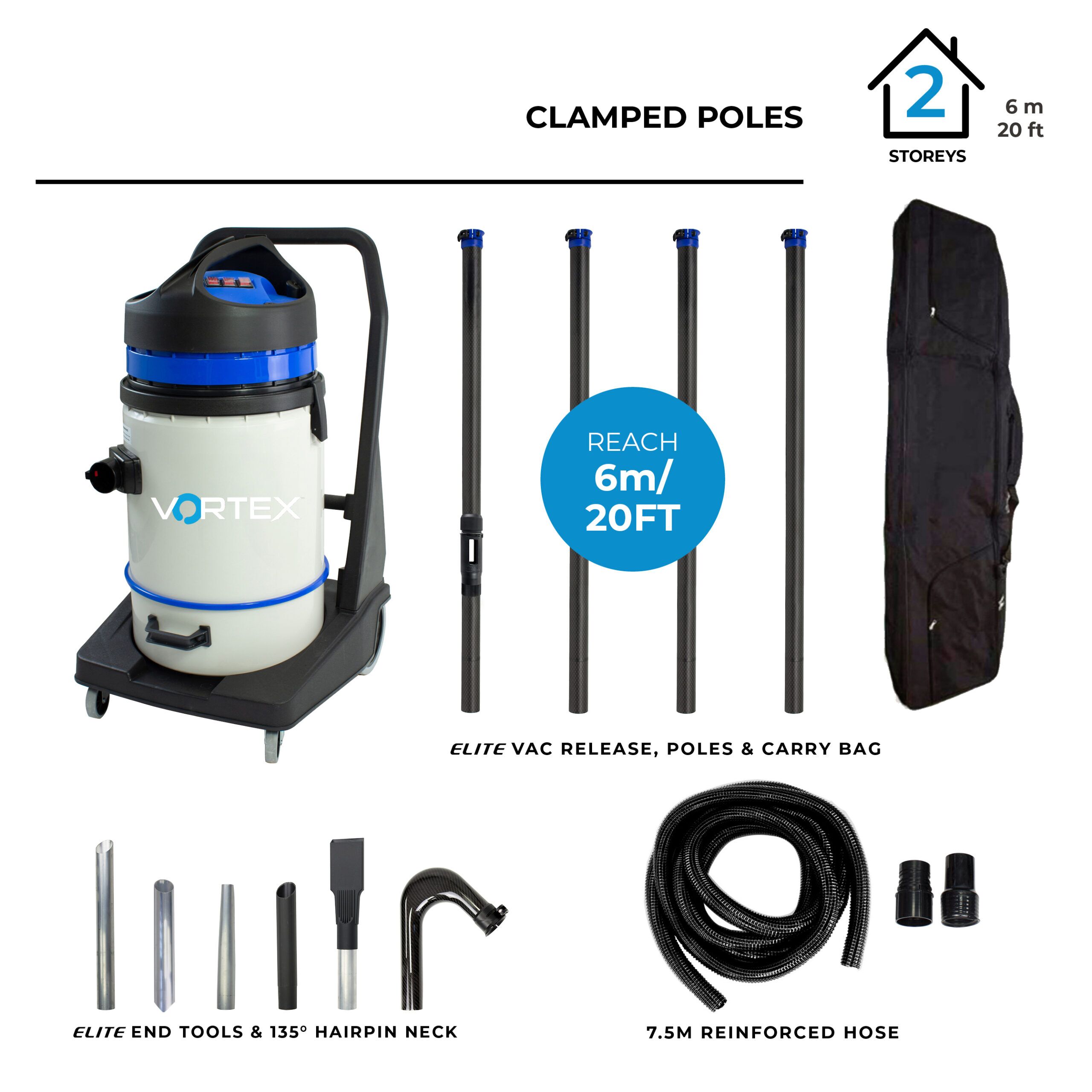 Safe and easy gutter vacuuming with this 2 motor wet dry vacuum ideal for domestic and commercial use, especially high reach applications.